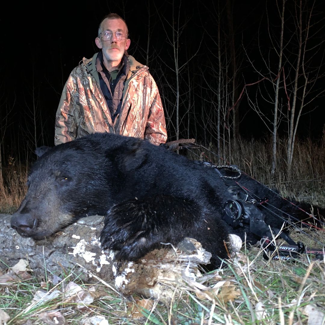 All bear hunts are in NW Minnesota. This hunt takes place from a ladder stand with a shot distance of approximately 20 yards. Every hunter will be able to hunt at least 3 active bear baits for a 5 day period. The woods we hunt consist of primarily poplar and oak. All hunts are in NO QUOTA ZONE. This means you can buy your license over the counter.